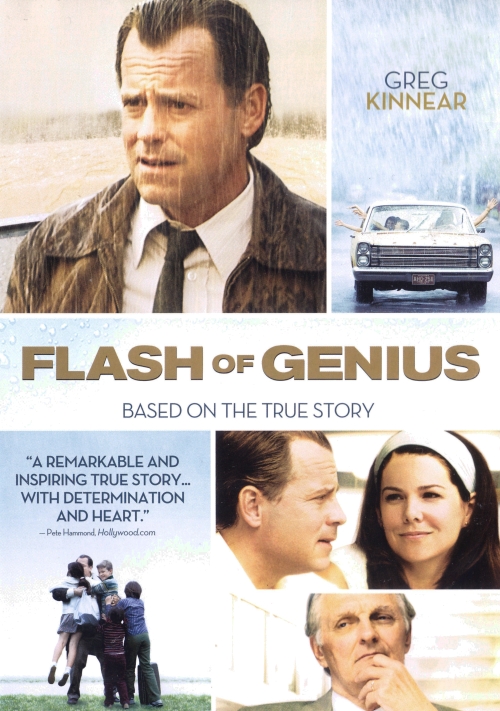 In the early-1990s, Greg Kinnear was just another amiable talk show host. After As Good As It Gets, however, Kinnear confirmed he could act. If Flash of Genius isn't as harrowing as the Bob Crane biopic Auto-Focus, Kinnear digs just as deep to play a man possessed, in this case taking on Bob Kearns, a Detroit physics professor who invented the intermittent windshield wiper. Supported by his wife (Lauren Graham) and best friend (Dermot Mulroney, making the most of an underwritten part), Kearns aims to align himself with a Motor City auto maker to manufacture his device. Ford expresses interest, so Kearns secures a warehouse, but it all falls apart when they abruptly pull the plug. Then he finds out that they've added automatic wipers to their latest line. Though he patented his invention, the company denies they're using his blueprint, so Kearns takes them to court, a process that drags on for three decades. Meanwhile, his support system starts to collapse as Kearns loses interest in everything except the credit he feels he deserves. If the film succumbs to some of the pitfalls of the genre, i.e. the win-lose-win structure, producer-turned-director Marc Abraham never paint Kearns as too much of a hero. Through the inventor's brilliance, the world's streets are safer, but his tenacity also drove away some of those he held most dear. Hence, Flash of Genius serves as an inspirational story, a cautionary tale, and the perfect opportunity for Kinnear to make a potentially off-putting character sympathetic.