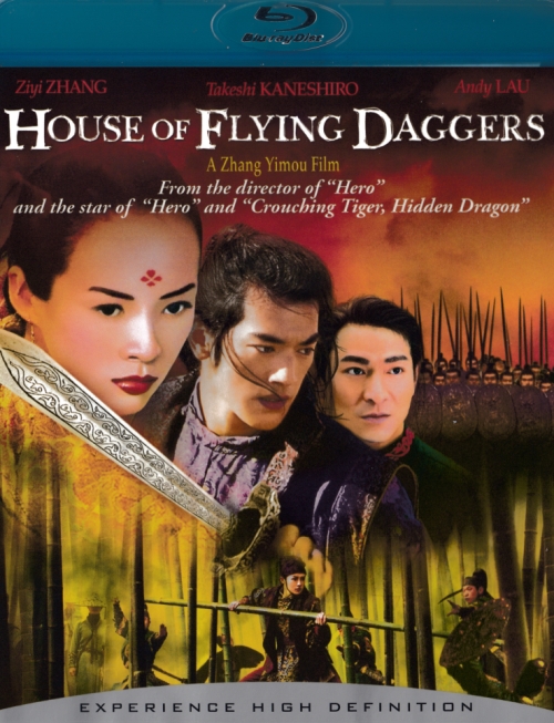 No one uses color like Chinese director Zhang Yimou--movies like Raise the Red Lantern or Hero, though different in tone and subject matter, are drenched in rich, luscious shades of red, blue, yellow, and green. House of Flying Daggers is no exception; if they weren't choreographed with such vigorous imagination, the spectacular action sequences would seem little more than an excuse for vivid hues rippling across the screen. Government officers Leo and Jin (Asian superstars Andy Lau and Takeshi Kaneshiro) set out to destroy an underground rebellion called the House of Flying Daggers (named for their weapon of choice, a curved blade that swoops through the air like a boomerang). Their only chance to find the rebels is a blind women named Mei (Ziyi Zhang, Crouching Tiger, Hidden Dragon) who has some lethal kung fu moves of her own. In the guise of an aspiring rebel, Jin escorts Mei through gorgeous forests and fields that become bloody battlegrounds as soldiers try to kill them both. While arrows and spears of bamboo fly through the air, Mei, Jin, and Leo turn against each other in surprising ways, driven by passion and honor. Zhang's previous action/art film, Hero, sometimes sacrificed momentum for sheer visual beauty; House of Flying Daggers finds a more muscular balance of aesthetic splendor and dazzling swordplay.
