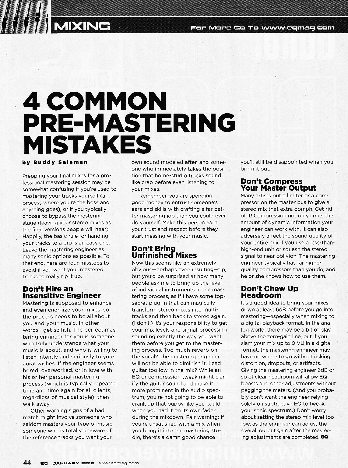 Mixing: 4 Common Pre-Mastering Mistakes